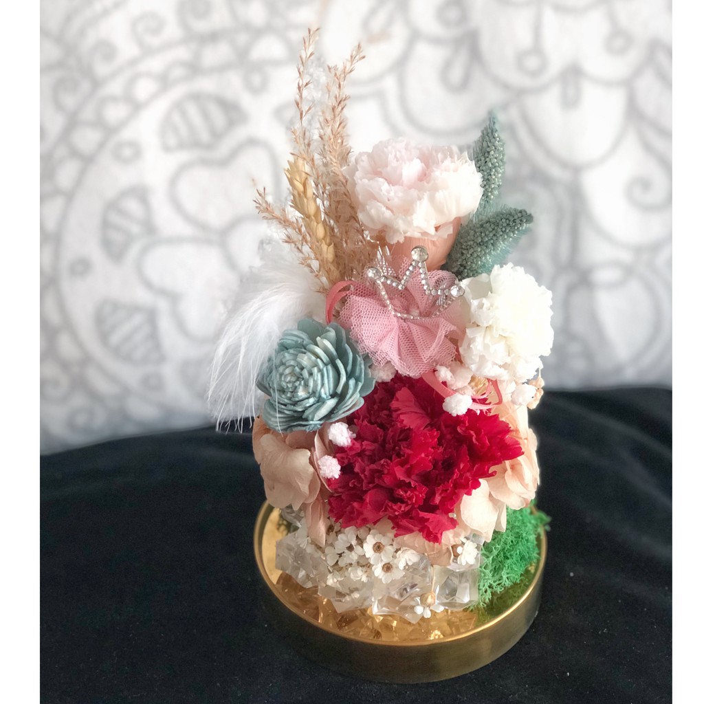 Preserved flowers in glass dome singapore.